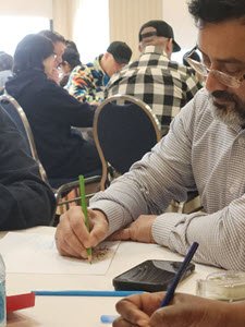 If you take a close look at Mohammad's hand you'll see that the little branches from a cluster of grapes are becoming a physical part of his tree of life creation. Good to see that we have someone creative and practical in charge of our finances.