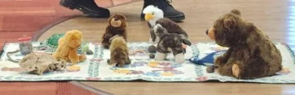 The animal friends that accompanied our Circle Connections presenters at the training conference represent the seven sacred teachings in Indigenous Culture: Love, Respect, Humility, Courage, Wisdom, Honesty, and Truth. These teachings interconnect to build respectful relationships with all of creation and the animals are generally considered to embody those traits.